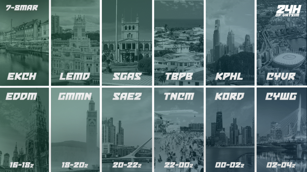 The countdown to the 7th edition of 24 Hours of VATSIM is officially on! We’re excited to unveil the first 6 thrilling legs that will take you on a breathtaking journey across all 6 continents, showcasing the diversity of the global aviation network.